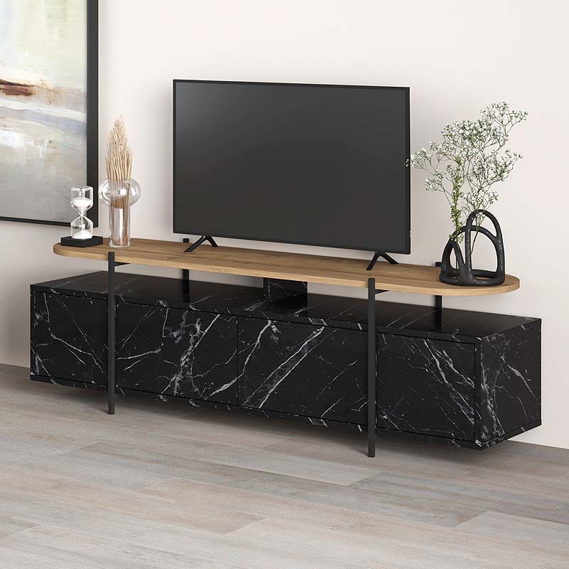 Έπιπλο τηλεόρασης Hanley Megapap από μελαμίνη χρώμα μαύρο εφέ μαρμάρου 160×35,6×48εκ. – GP037-0086,1