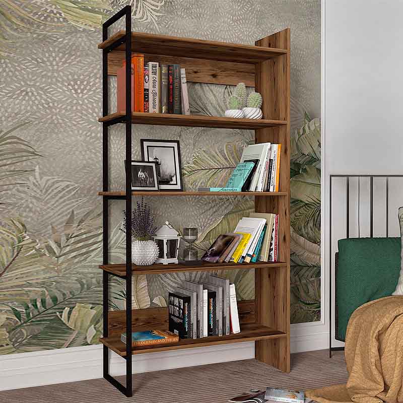 Βιβλιοθήκη μελαμίνης Cecilia Megapap χρώμα καπνιστή καρυδιά 91,8×34,8×180εκ. – GP042-0107,1