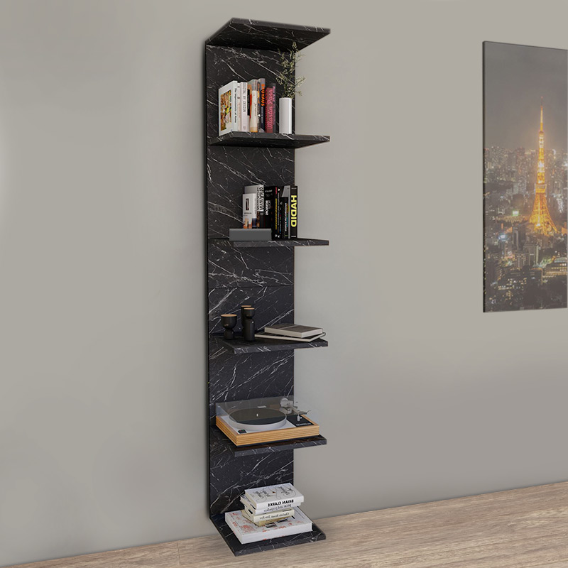 Βιβλιοθήκη – Ραφιέρα τοίχου μελαμίνης Ogden Megapap χρώμα μαύρο εφέ μαρμάρου 34,5x30x180εκ. – GP041-0010,3