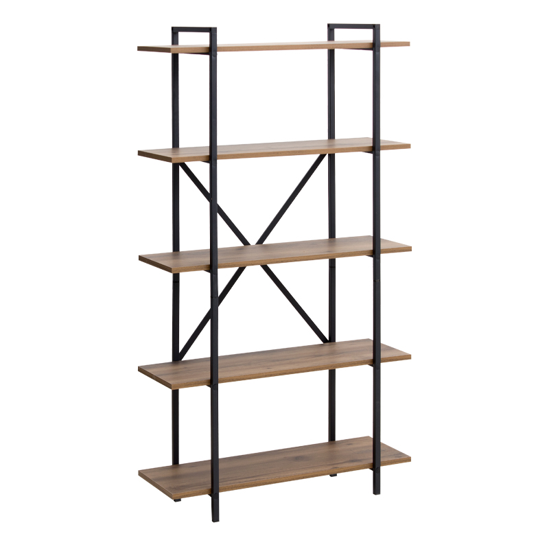 Βιβλιοθήκη Ernesto Megapap μεταλλική – μελαμίνης χρώμα μαύρο – καπνιστή καρυδιά 90×35,5×160εκ. – GP041-0068,1