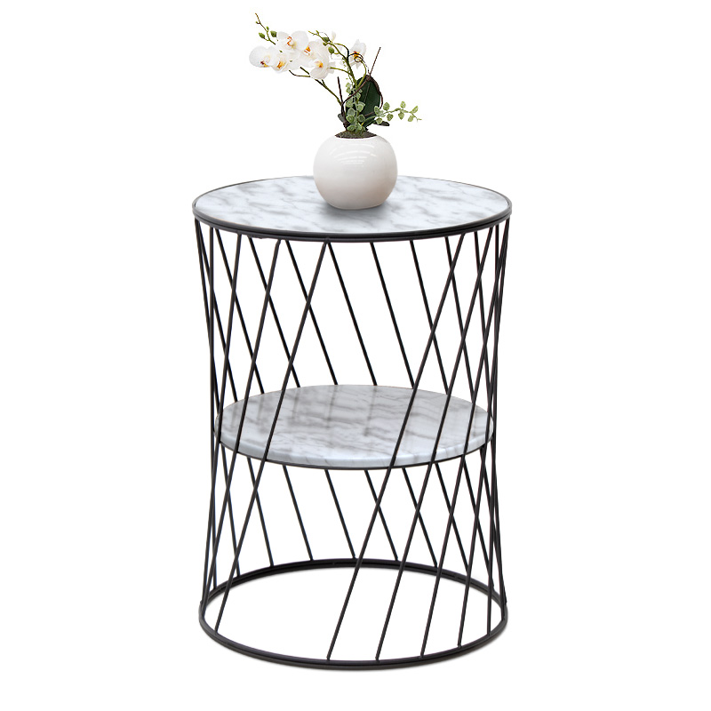 Βοηθητικό τραπεζάκι Jaspin Megapap μεταλλικό – Mdf χρώμα μαύρο-λευκό εφέ μαρμάρου 32x32x44εκ. – GP030-0037,5