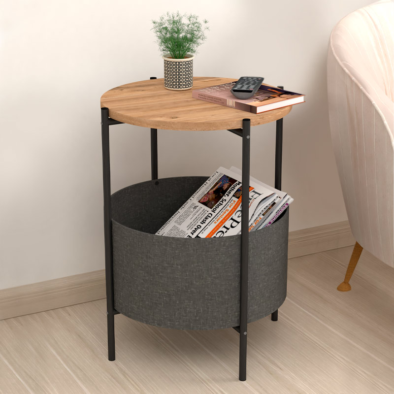 Βοηθητικό τραπεζάκι Kalid Megapap μελαμίνης – υφασμάτινο χρώμα pine oak – γκρι 43x43x60εκ.Τεχνικά χαρακτηριστικά: Χρώμα: pine oak – γκρι Διαστάσεις: Μήκος 43 x Βάθος 43 x Ύψος 60 εκ. Φέρει υφασμάτινο αποθηκευτικό χώρο, ο οποίος αφαιρείται και πλένεται. Διαστάσεις αποθηκευτικού χώρου: Μήκος 44,5 x Πλάτος 44,5 x Ύψος 21,5 εκ. Πάχος μελαμίνης: 18mm. Κατασκευασμένο από μοριοσανίδα με επένδυση μελαμίνης πρώτης ποιότητας και μέταλλο υψηλών αντοχών στη φθορά και στο χρόνο. Το μέταλλο κατασκευής δεν σκουριάζει και είναι βαμμένο με ανθεκτική στις γρατσουνιές ηλεκτροστατική βαφή πούδρας. Τα υλικά κατασκευής είναι αβλαβή για το περιβάλλον και την υγεία, δεν περιέχουν καρκινογόνες ουσίες και ακολουθούν τα ευρωπαϊκά πρότυπα ποιότητας Ε1. Ιδανικό για τον οικιακό και επαγγελματικό σας χώρο.Παρατηρήσεις:Το προϊόν παραδίδεται αμοντάριστο στην εργοστασιακή του συσκευασία με αναλυτικές οδηγίες συναρμολόγησης.Η χρωματική απόχρωση του προϊόντος ενδέχεται να διαφέρει ελαφρώς σε σχέση με τη φωτογραφική απεικόνισή του στην οθόνη σας.