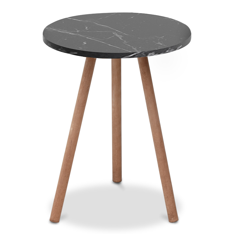 Βοηθητικό τραπεζάκι Roma Megapap από μελαμίνη χρώμα μαύρο εφέ μαρμάρου 33,5×33,5×46εκ.Τεχνικά χαρακτηριστικά: Χρώμα: μαύρο εφέ μαρμάρου Διαστάσεις: Μήκος 33,5 x Βάθος 33,5 x Ύψος 46 εκ. Η επιφάνεια είναι κατασκευασμένη από μελαμίνη εξαιρετικής ποιότητας πάχους 1,8 εκ. Τα πόδια είναι κατασκευασμένα από μασίφ ξύλο οξιάς και καλυμμένα με ακρυλικό βερνίκι. Η γυαλιστερή επιφάνεια και τα μασίφ πόδια από ξύλο οξιάς χαρίζουν στο χώρο σας μια ζεστή και φυσική αίσθηση. Η επιφάνεια είναι καλυμμένη με προστατευτικό βερνίκι, ώστε η μελαμίνη να μη χάνει τη φυσικότητά της και να την κρατά ανθεκτική. Ιδανικό για τον οικιακό και επαγγελματικό σας χώρο.Παρατηρήσεις:Το προϊόν παραδίδεται αμοντάριστο, σε εργοστασιακή συσκευασία.Η χρωματική απόχρωση του προϊόντος ενδέχεται να διαφέρει ελαφρώς σε σχέση με την φωτογραφική απεικόνισή του στην οθόνη σας.