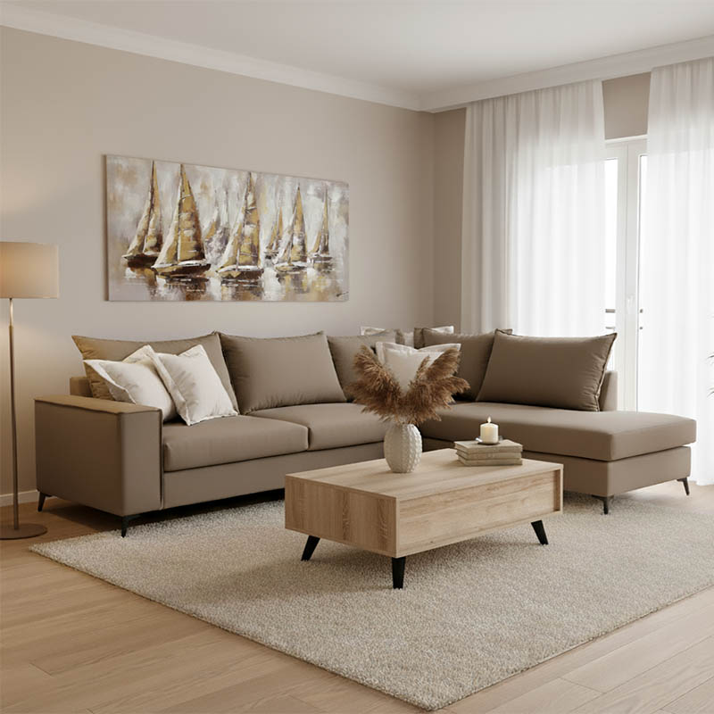 Γωνιακός καναπές αριστερή γωνία Romantic pakoworld ύφασμα mocha-cream 290x235x95εκ