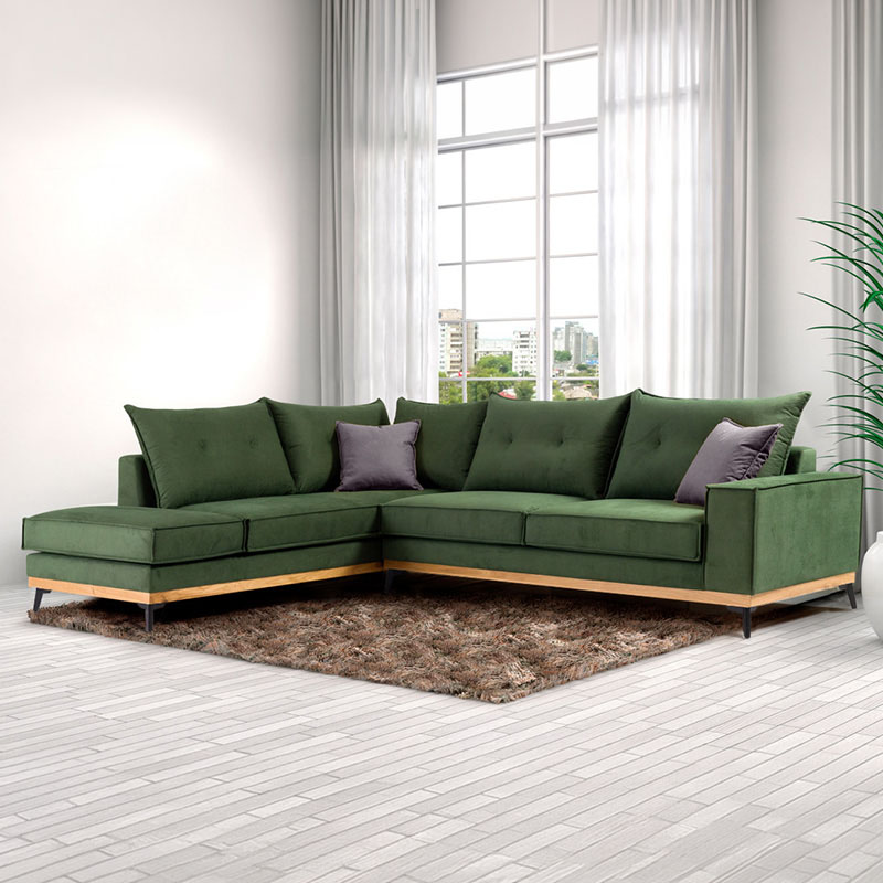 Γωνιακός καναπές δεξιά γωνία Luxury II pakoworld ύφασμα κυπαρισσί-ανθρακί 290x235x95εκ