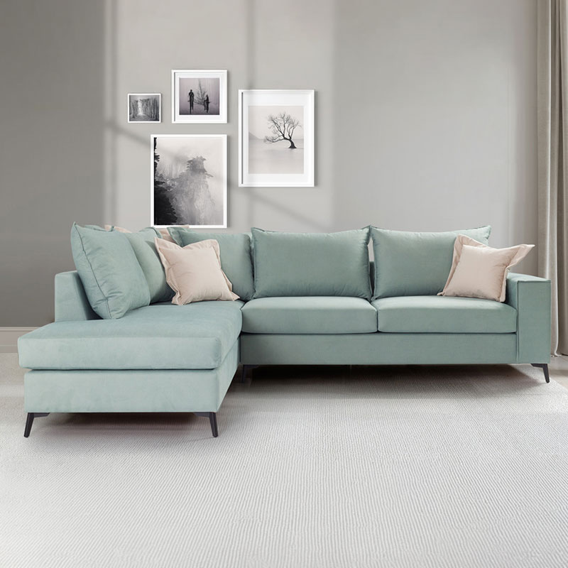 Γωνιακός καναπές δεξιά γωνία Romantic pakoworld ύφασμα Ciel-Cream 290x235x95εκ