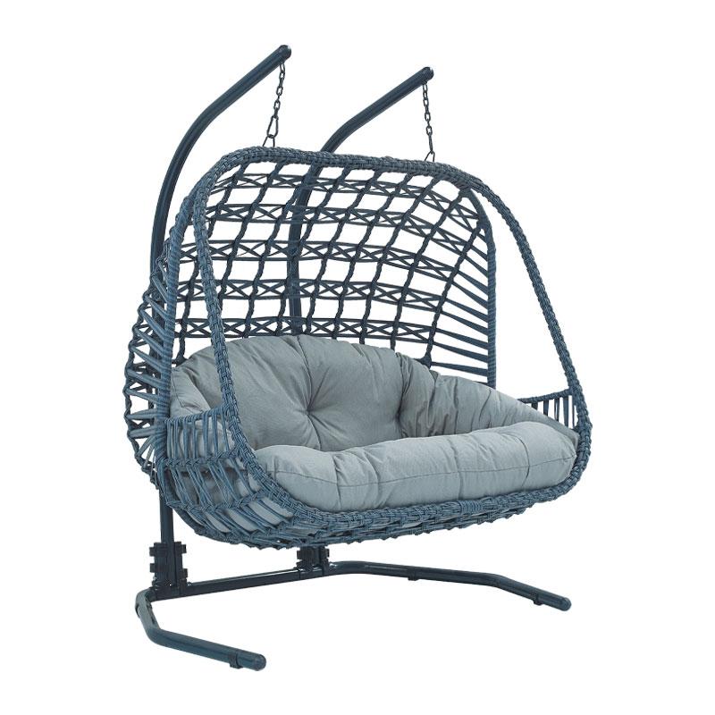 Κρεμαστή πολυθρόνα-φωλιά με εξαιρετικό design, μεταλλική βάση, με ιδιαίτερη πλέξη poly rope και μαξιλάρια με ύφασμα polyester υψηλής ποιότητας και αντοχής. Δημιουργήστε μια γωνιά χαλάρωσης και άνεσης στο μπαλκόνι ή τον κήπο σας.