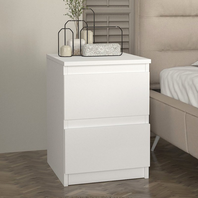 Κομοδίνο Breve Megapap χρώμα λευκό 39,8×41,8×55εκ.Τεχνικά χαρακτηριστικά: Χρώμα: λευκό Διαστάσεις: Μήκος 39,8 x Βάθος 41,8 x Ύψος 55 εκ. Πάχος μελαμίνης: 18mm. Διαθέτει δύο συρτάρια. Κατασκευασμένο από μοριοσανίδα με επένδυση μελαμίνης πρώτης ποιότητας υψηλών αντοχών στη φθορά και στο χρόνο. Τα υλικά κατασκευής είναι αβλαβή για το περιβάλλον και την υγεία, δεν περιέχουν καρκινογόνες ουσίες και ακολουθούν τα ευρωπαϊκά πρότυπα ποιότητας Ε1. Διαθέτει πιστοποιήση TSE και ISO 9001. Ιδανικό για τον οικιακό και επαγγελματικό σας χώρο.Παρατηρήσεις:Το προϊόν παραδίδεται αμοντάριστο στην εργοστασιακή του συσκευασία με αναλυτικές οδηγίες συναρμολόγησης.Η χρωματική απόχρωση του προϊόντος ενδέχεται να διαφέρει ελαφρώς σε σχέση με τη φωτογραφική απεικόνισή του στην οθόνη σας.