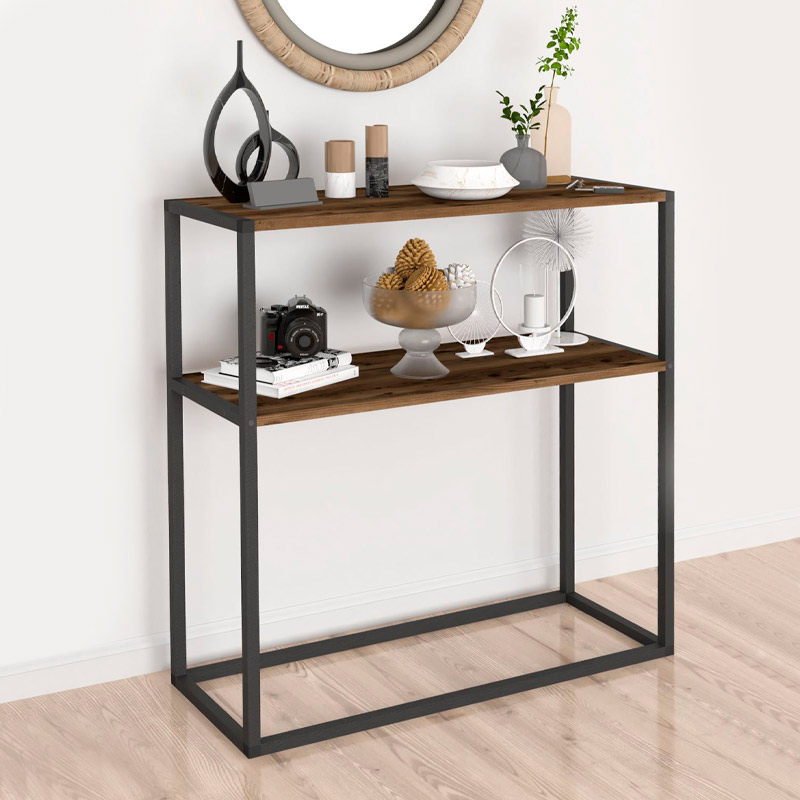 Κονσόλα Castel Megapap μεταλλική – μελαμίνης χρώμα μαύρο – καπνιστή καρυδιά 90×33,5×90εκ. – GP041-0018,5