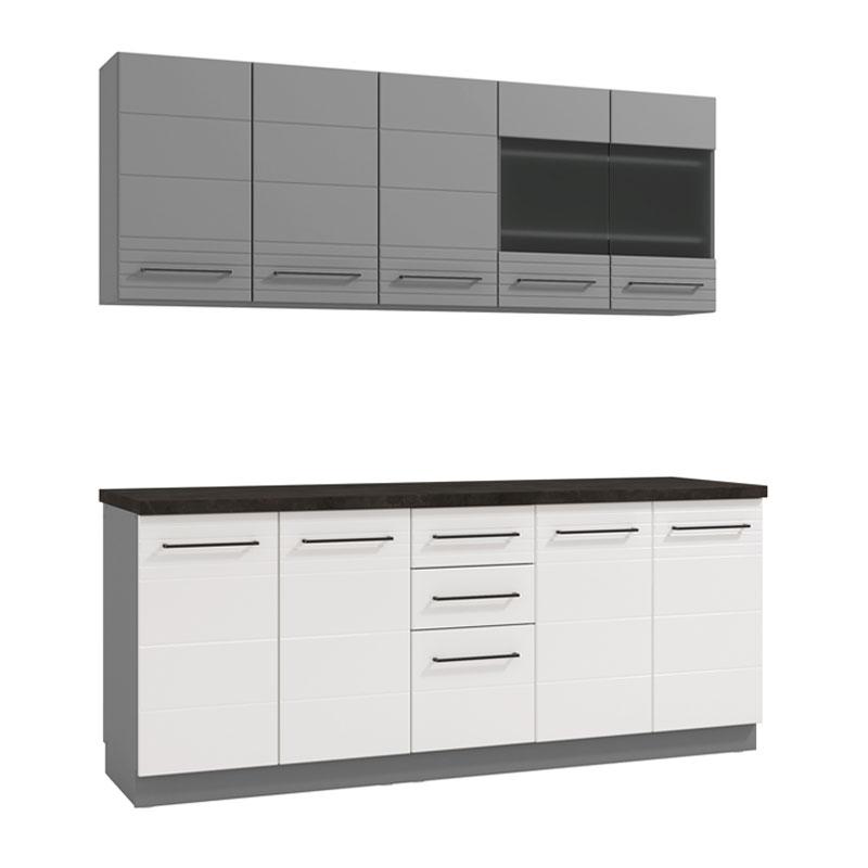 ΚΟΥΖΙΝΑ PETRA 200 ΓΚΡΙ ΓΡΑΦΙΤΗΣ-ΛΕΥΚΟ HIGH GLOSS FOIL-ΓΚΡΙ MAT FOIL 200x56x214εκ