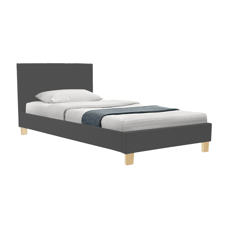 Κρεβάτι Nevil pakoworld ύφασμα ανθρακί με ξύλινο πόδι σε φυσική απόχρωση 90×190εκ 006-000068