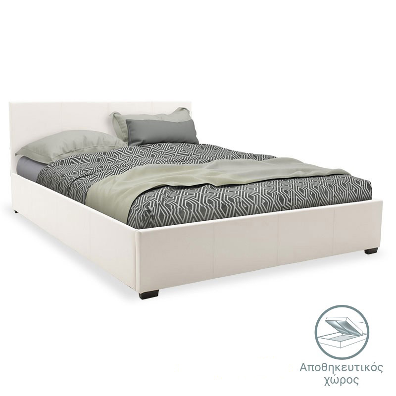 Κρεβάτι Norse pakoworld διπλό pu λευκό ματ με αποθηκευτικό χώρο 160×200εκ