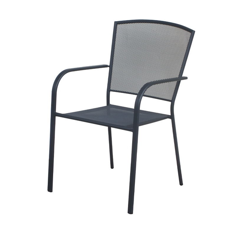 Μεταλλική καρέκλα με διάτρητο σχέδιο στην πλάτη και το κάθισμα. Σταθερός σκελετός από εξαιρετικής ποιότητας μέταλλο ηλεκτροστατικής βαφής με αντοχή στην καταπόνηση και στη φθορά από τις καιρικές συνθήκες. Με δυνατότητα στοίβαξης, κατάλληλη για εξωτερική και επαγγελματική χρήση. Για περισσότερη άνεση συνδυάστε πολύχρωμα μαξιλάρια πλάτης ή καθίσματος.