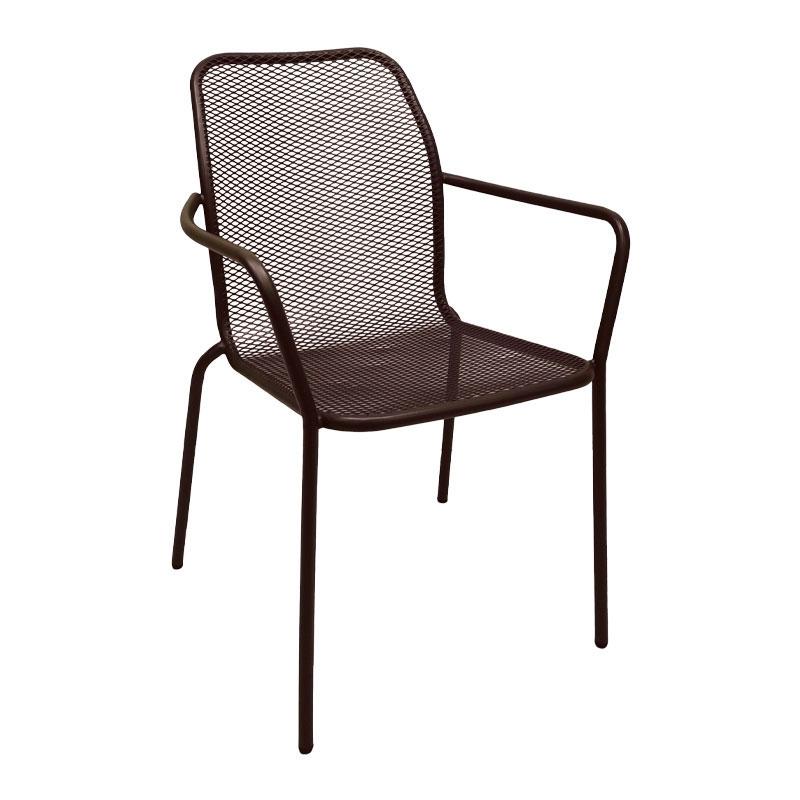 Μεταλλική καρέκλα με διάτρητο σχέδιο στην πλάτη και το κάθισμα. Σταθερός σκελετός από εξαιρετικής ποιότητας μέταλλο ηλεκτροστατικής βαφής με αντοχή στην καταπόνηση και στη φθορά από τις καιρικές συνθήκες. Με δυνατότητα στοίβαξης, κατάλληλη για εξωτερική και επαγγελματική χρήση. Για περισσότερη άνεση συνδυάστε πολύχρωμα μαξιλάρια πλάτης ή καθίσματος.