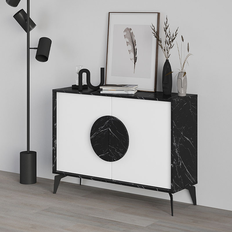 Μπουφές μελαμίνης Gora Megapap χρώμα μαύρο εφέ μαρμάρου – λευκό 110×35,6×82εκ. – GP037-0082,1