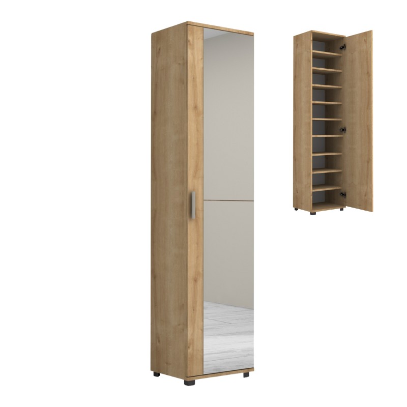 Ντουλάπα ρούχων – παπουτσοθήκη Visla Megapap μονόφυλλη με καθρέπτη χρώμα φυσικό οξιάς 45x36x187εκ. – GP028-0097,3