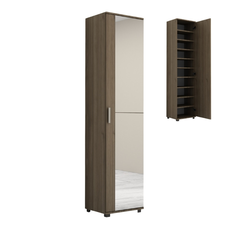 Ντουλάπα ρούχων – παπουτσοθήκη Visla Megapap μονόφυλλη με καθρέπτη χρώμα καρυδί 45x36x187εκ. – GP028-0097,4