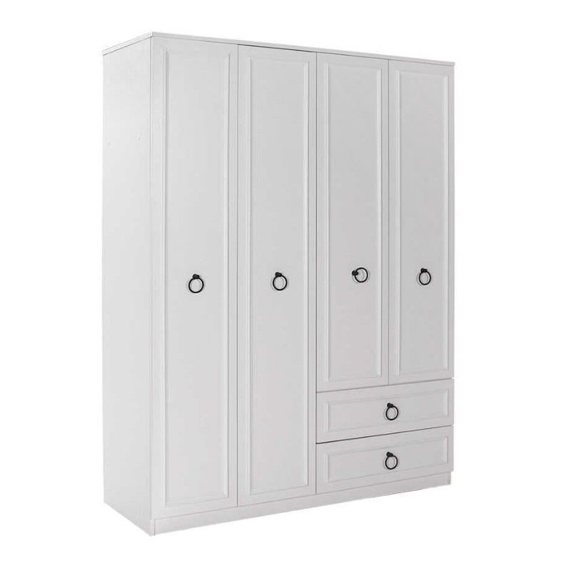 Ντουλάπα ρούχων Hampton Megapap τετράφυλλη με συρτάρια χρώμα λευκό 140x52x185εκ. – GP009-0245,1