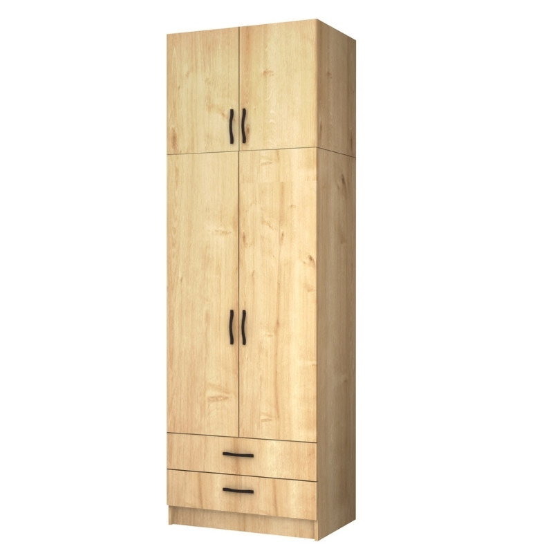 Ντουλάπα ρούχων Ricardo Megapap δίφυλλη με πατάρι και συρτάρια χρώμα φυσικό οξιάς 80×51,8×240εκ. – GP100-0063,2