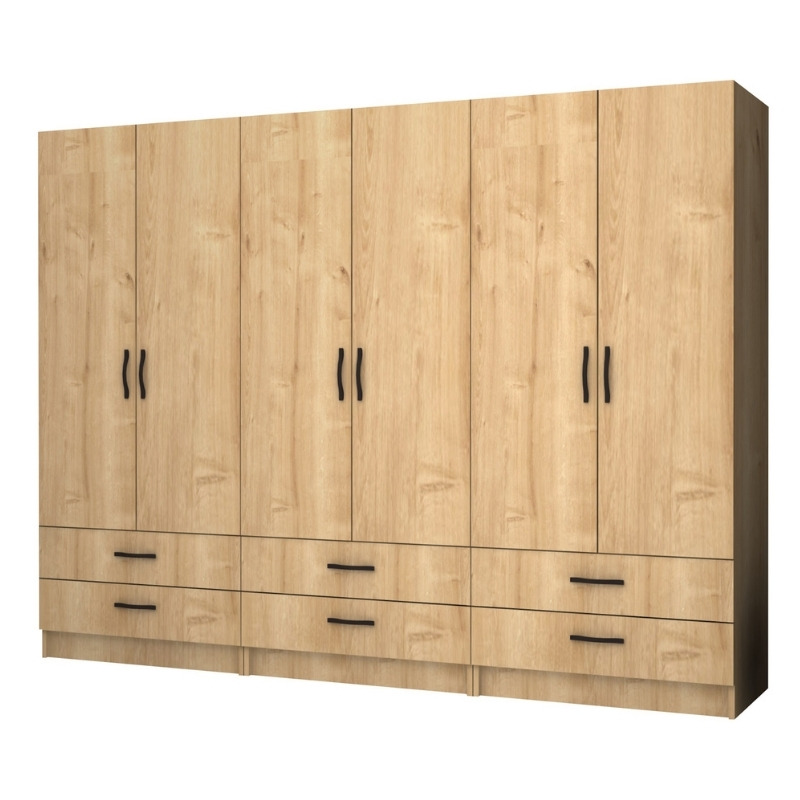 Ντουλάπα ρούχων Ricardo Megapap εξάφυλλη με συρτάρια χρώμα φυσικό οξιάς 240×51,8×181εκ. – GP100-0066,2