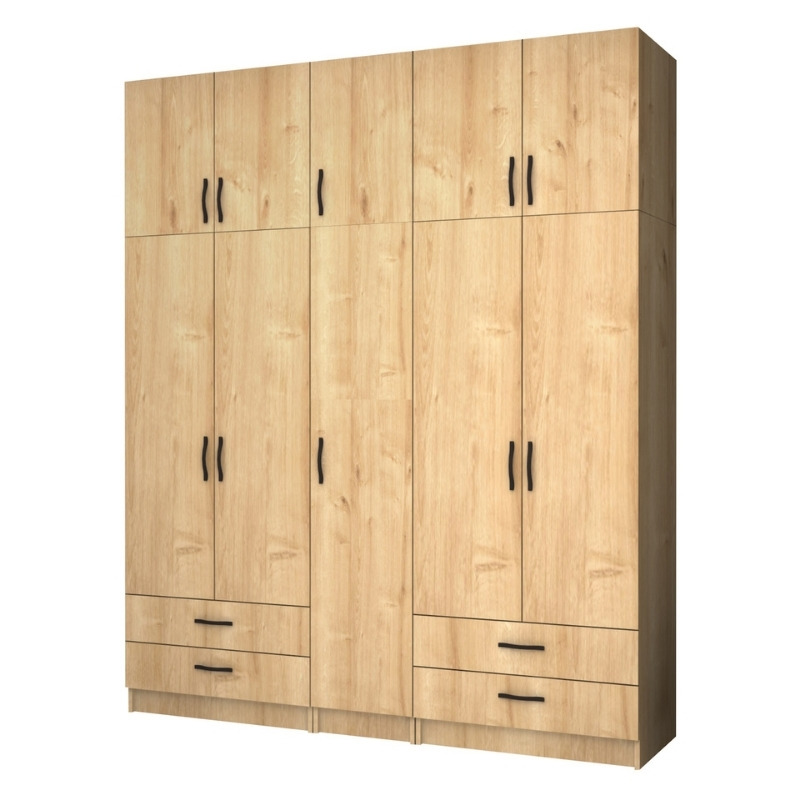 Ντουλάπα ρούχων Ricardo Megapap πεντάφυλλη με πατάρι και συρτάρια χρώμα φυσικό οξιάς 200×51,8×240εκ. – GP100-0073,2