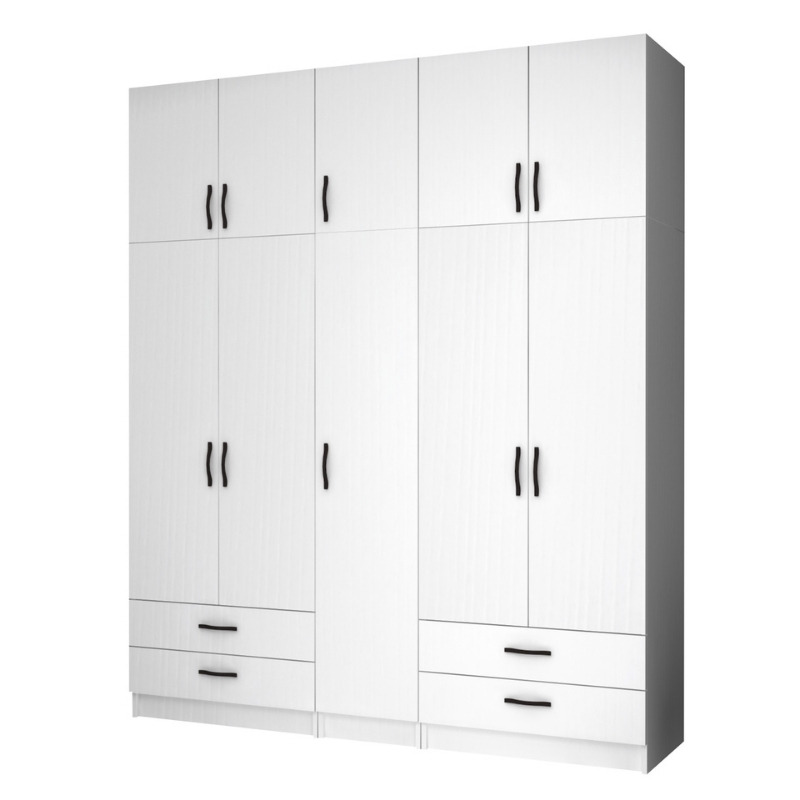 Ντουλάπα ρούχων Ricardo Megapap πεντάφυλλη με πατάρι και συρτάρια χρώμα λευκό 200×51,8×240εκ. – GP100-0073,1