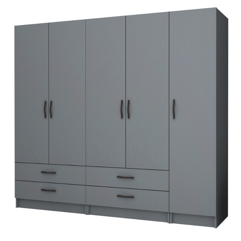 Ντουλάπα ρούχων Ricardo Megapap πεντάφυλλη με συρτάρια χρώμα ανθρακί 200×51,8×181εκ. – GP100-0070,4