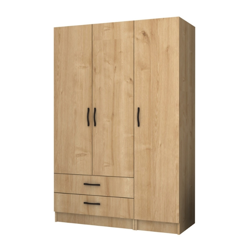 Ντουλάπα ρούχων Ricardo Megapap τρίφυλλη με συρτάρια χρώμα φυσικό οξιάς 120×51,8×181εκ. – GP100-0068,2