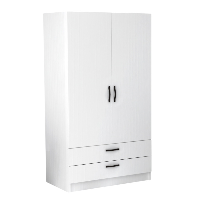 Ντουλάπα ρούχων Victoria Megapap δίφυλλη με συρτάρια χρώμα λευκό 100x60x181εκ. Εάν ψάχνετε μια μεγάλη ντουλάπα για να τακτοποιήσετε όλα σας τα ρούχα και αξεσουάρ η ντουλάπα Victoria είναι η ιδανική επιλογή. Κλασσική γραμμή και κατασκευή από ποιοτικά υλικά με μεγάλους χώρους αποθήκευσης που την καθιστούν αναγκαία και απαραίτητη για κάθε χώρο. Τεχνικά χαρακτηριστικά: Χρώμα: λευκό Διαστάσεις ντουλάπας: Μήκος 100 x Βάθος 60 x Ύψος 181 εκ. Πάχος μελαμίνης: 18mm. Είναι κατάλληλη και για επαγγελματική χρήση (ξενοδοχεία, ξενώνες, Airbnb κλπ.) Στο εσωτερικό της φέρει μια μεταλλική βέργα για κρεμάστρες. Στο κάτω μέρος φέρει δύο πρακτικά συρόμενα συρτάρια. Τα πόμολα είναι κατασκευασμένα από πολυπροπυλένιο άριστης ποιότητας σε μαύρο χρώμα. Κατασκευασμένη από μοριοσανίδα με επένδυση μελαμίνης εξαιρετικής ποιότητας και υψηλών αντοχών στη φθορά και στο χρόνο. Τα υλικά κατασκευής είναι αβλαβή για το περιβάλλον και την υγεία, δεν περιέχουν καρκινογόνες ουσίες και ακολουθούν τα ευρωπαϊκά πρότυπα ποιότητας Ε1.Παρατηρήσεις:Το προϊόν παραδίδεται αμοντάριστο στην εργοστασιακή του συσκευασία και με αναλυτικό οδηγό συναρμολόγησης.Η χρωματική απόχρωση του προϊόντος ενδέχεται να διαφέρει ελαφρώς σε σχέση με τη φωτογραφική απεικόνισή του στην οθόνη σας.