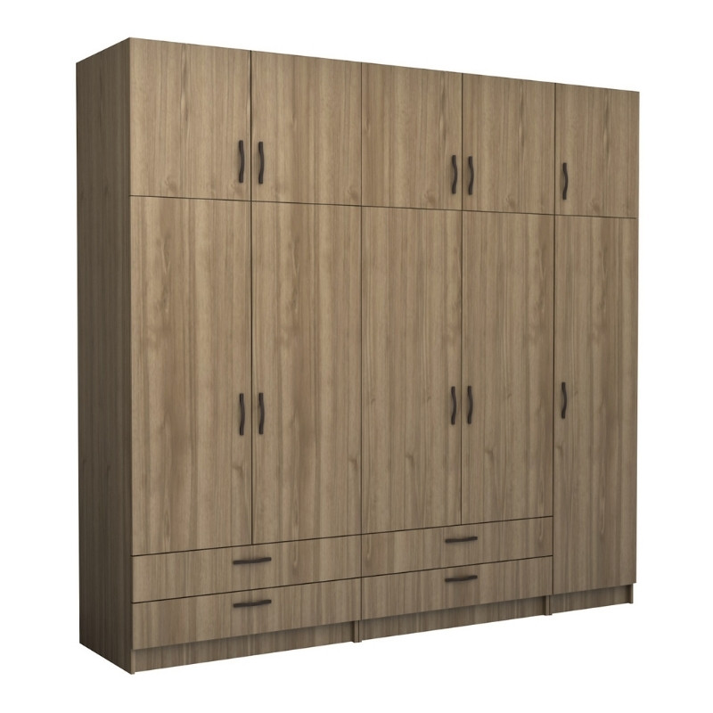 Ντουλάπα ρούχων Victoria Megapap πεντάφυλλη με πατάρι και συρτάρια χρώμα καρυδί 250x60x240εκ. – GP100-0094,3