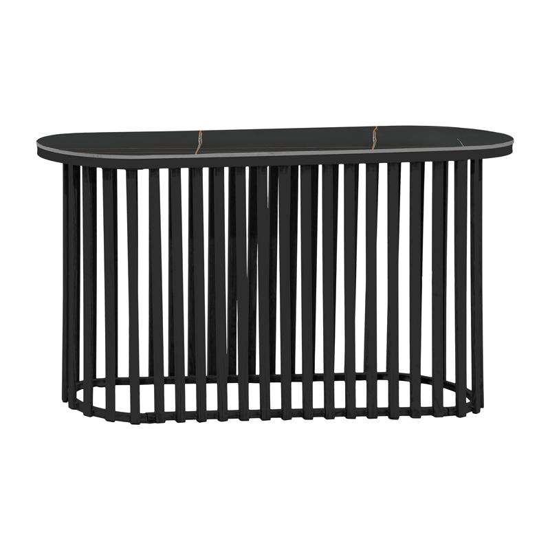 ΟΒΑΛ ΚΟΝΣΟΛΑ Fylliana FL18 ΜΕ ΚΕΡΑΜΙΚΗ ΕΠΙΦΑΝΕΙΑ ΚΑΙ ΜΕΤΑΛΛΙΚΗ ΒΑΣΗ ΣΕ ΜΑΥΡΟ ΜΑΤ ΧΡΩΜΑ 140x45x78εκ