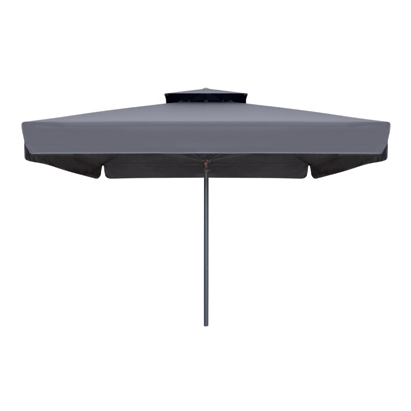 Ομπρέλα επαγγελματική Juno Megapap τηλεσκοπική αλουμινίου χρώμα ανθρακί 4x4m.Τετράγωνη ομπρέλα αλουμινίου με τηλεσκοπικό μηχανισμό και διπλό αεραγωγό που επιτρέπει την κυκλοφορία του αέρα μειώνοντας ταυτόχρονα την πίεση του. Ιδανική επιλογή για επαγγελματική χρήση όπως beach bars, πισίνες και χώρους εστίασης.Τεχνικά χαρακτηριστικά: Με αδιάβροχο ύφασμα polyester 320gr. σε ανθρακί χρώμα με flaps 35 εκ. Με ενισχυμένο σκελετό αλουμινίου σε ανθρακί χρώμα. Διάσταση (άνοιγμα): 4 x 4 μέτρα. Κολώνα στήριξης: Φ61mm. και πάχος 2,3mm. Με 8 ενισχυμένες ακτίνες αλουμινίου 18 x 28 εκ. και πάχος 1,4mm. Με 12 ακτίνες αλουμινίου 14 x 24 εκ. και πάχος 1,2mm. Με τηλεσκοπικό μηχανισμό ανοίγματος – κλεισίματος. Με διπλό top (αεραγωγό). Η βάση στήριξης δε συμπεριλαμβάνεται. Η ομπρέλα συνιστάται να παραμένει κλειστή σε άστατο καιρό και όταν δε χρησιμοποιείται για αποφυγή ανεπιθύμητης φθοράς.Παρατηρήσεις:Το προϊόν παραδίδεται σε εργοστασιακή συσκευασία. Η χρωματική απόχρωση του προϊόντος ενδέχεται να διαφέρει ελαφρώς σε σχέση με την φωτογραφική απεικόνισή του στην οθόνη σας.