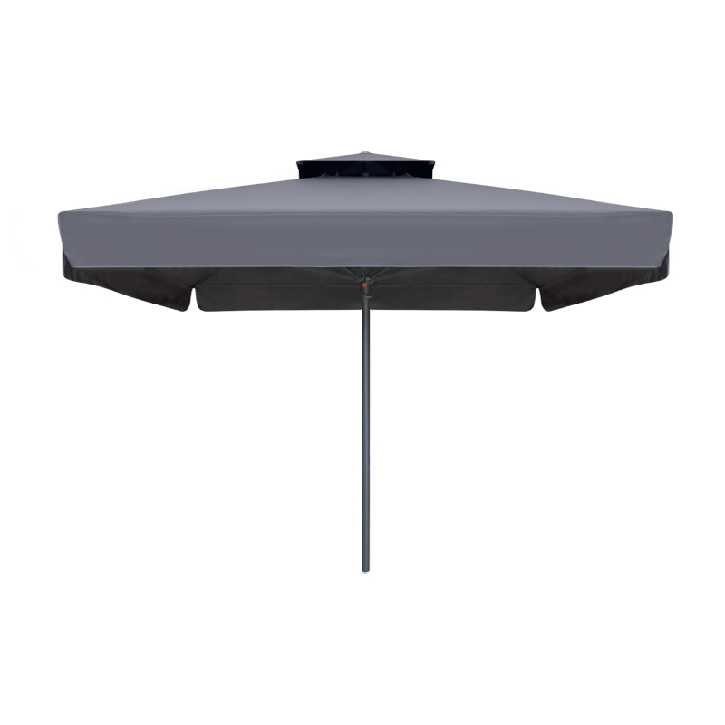 Ομπρέλα επαγγελματική Juno Megapap τηλεσκοπική αλουμινίου χρώμα ανθρακί 3,5×3,5m.Τετράγωνη ομπρέλα αλουμινίου με τηλεσκοπικό μηχανισμό και διπλό αεραγωγό που επιτρέπει την κυκλοφορία του αέρα μειώνοντας ταυτόχρονα την πίεση του. Ιδανική επιλογή για επαγγελματική χρήση όπως beach bars, πισίνες και χώρους εστίασης.Τεχνικά χαρακτηριστικά: Με αδιάβροχο ύφασμα polyester 320gr. σε ανθρακί χρώμα με flaps 35 εκ. Με ενισχυμένο σκελετό αλουμινίου σε ανθρακί χρώμα. Διάσταση (άνοιγμα): 3,5 x 3,5 μέτρα. Ύψος ομπρέλας: 2,95μ. όταν είναι ανοιχτή. Κολώνα στήριξης: Φ61mm. και πάχος 2,3mm. Με 8 ενισχυμένες ακτίνες αλουμινίου 18 x 28 εκ. και πάχος 1,4mm. Με 12 ακτίνες αλουμινίου 14 x 24 εκ. και πάχος 1,2mm. Με τηλεσκοπικό μηχανισμό ανοίγματος – κλεισίματος. Με διπλό top (αεραγωγό). Η βάση στήριξης δε συμπεριλαμβάνεται. Η ομπρέλα συνιστάται να παραμένει κλειστή σε άστατο καιρό και όταν δε χρησιμοποιείται για αποφυγή ανεπιθύμητης φθοράς.Παρατηρήσεις:Το προϊόν παραδίδεται σε εργοστασιακή συσκευασία. Η χρωματική απόχρωση του προϊόντος ενδέχεται να διαφέρει ελαφρώς σε σχέση με την φωτογραφική απεικόνισή του στην οθόνη σας.
