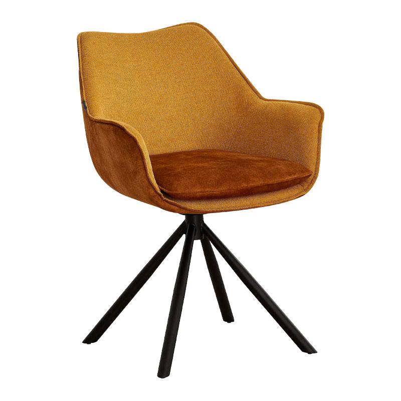 ΠΕΡΙΣΤΡΕΦΟΜΕΝΗ ΚΑΡΕΚΛΑ Fylliana FL5064 ΜΕ ΜΕΤΑΛΛΙΚΑ ΠΟΔΙΑ ΚΑΙ ΚΙΤΡΙΝΟ ΧΡΩΜΑ ΥΦΑΣΜΑΤΟΣ 62×61,5×84εκ