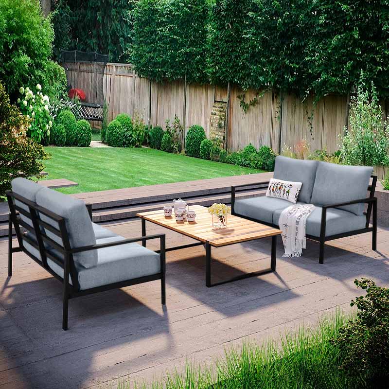 Σαλόνι κήπου Ermis Megapap σετ 3 τμχ μέταλλο – ξύλο χρώμα μαύρο – γκρι – GP055-0036,1