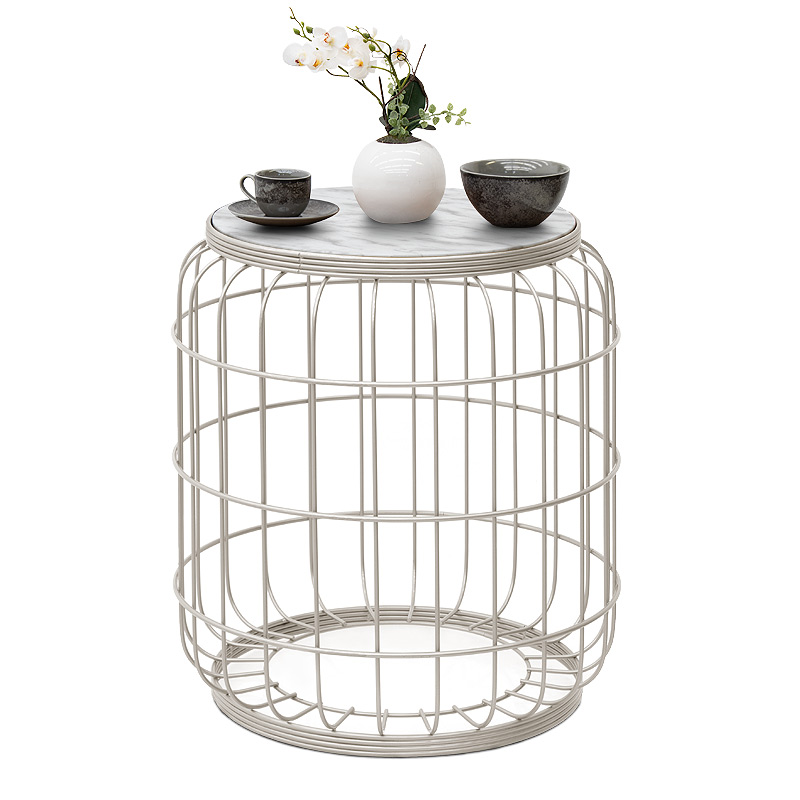 Σκαμπώ – τραπεζάκι βοηθητικό Muller Megapap μεταλλικό – Mdf χρώμα λευκό 35x35x47εκ. – GP030-0038,3