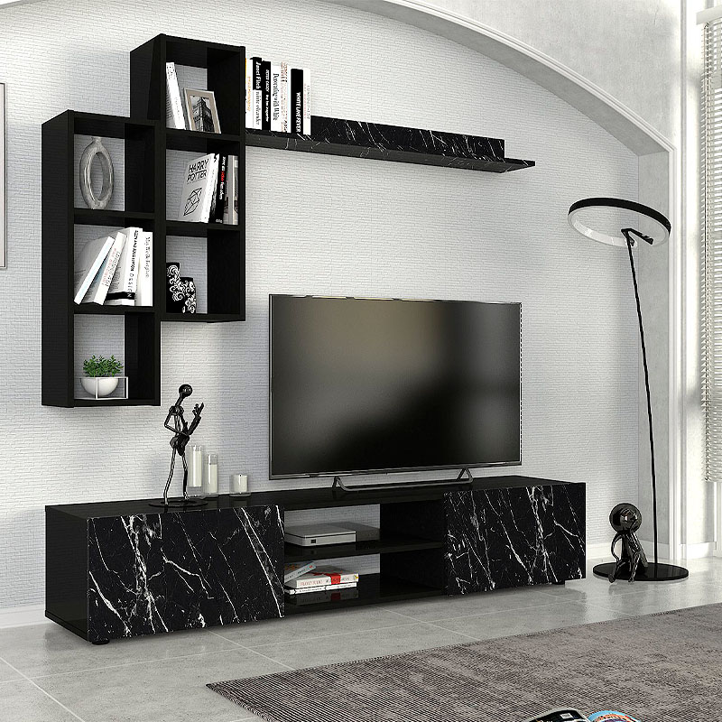 Σύνθεση τηλεόρασης Duana Megapap χρώμα μαύρο εφέ μαρμάρου – μαύρο 180x38x35,7εκ. – GP042-0246,1
