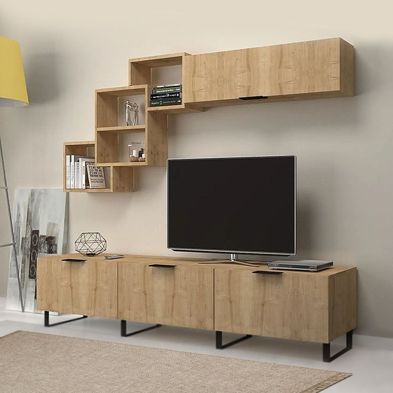 Σύνθεση τηλεόρασης Heydar Megapap από μελαμίνη χρώμα φυσικό οξιάς 210x35x50εκ. – GP028-0087,1