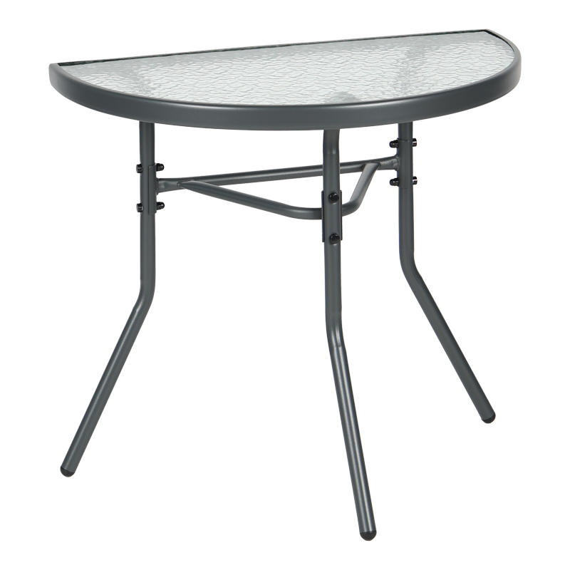 Μετατρέψτε το μικρό σας μπαλκόνι στην αγαπημένη σας γωνιά χαλάρωσης! Το ημικυκλικό τραπέζι Bion είναι ο τέλειος συνδυασμός στυλ και λειτουργικότητας. Ο έξυπνος σχεδιασμός του σάς επιτρέπει να το τοποθετήσετε ακριβώς πάνω στον τοίχο, δημιουργώντας μια φιλόξενη γωνιά για τον πρωινό σας καφέ ή το απογευματινό σας ποτό, χωρίς να θυσιάσετε πολύτιμο χώρο. Η ανθεκτική του κατασκευή με μεταλλικό σκελετό και γυάλινη επιφάνεια το καθιστά ιδανικό για όλη τη διάρκεια του χρόνου.
