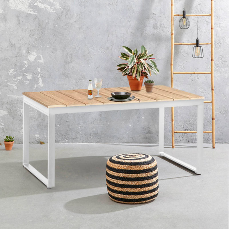 Τραπέζι κήπου Poseidon Megapap μεταλλικό – μασίφ ξύλο χρώμα λευκό – φυσικό 150x82x75εκ.Τεχνικά χαρακτηριστικά: Χρώμα: λευκό – φυσικό Διαστάσεις: Μήκος 150 x Βάθος 82 x Ύψος 75 εκ. Πάχος μετάλλου: 40x20mm. Κατασκευασμένο από μασίφ ξύλο πεύκου και μέταλλο εξαιρετικής ποιότητας και υψηλών αντοχών στη φθορά και στο χρόνο. Για τον καθαρισμό της επιφάνειας και την καλύτερη συντήρησή του, χρησιμοποιούμε ένα πανί εμποτισμένο με ζεστό σαπουνόνερο και αποφεύγουμε τα ισχυρά υγρά καθαρισμού που μπορούν να βλάψουν το μασίφ ξύλο. Για την καλύτερη διατήρηση του πρέπει να προστατεύεται από την υγρασία και την έντονη ηλιακή ακτινοβολία. Η επιφάνειά του έχει περαστεί με προστατευτικό βερνίκι με βάση το νερό. Τα υλικά κατασκευής είναι αβλαβή για το περιβάλλον και την υγεία, δεν περιέχουν καρκινογόνες ουσίες και ακολουθούν τα ευρωπαϊκά πρότυπα ποιότητας Ε1. Είναι κατάλληλο και για επαγγελματική χρήση (ξενοδοχεία, ξενώνες, Airbnb κλπ.)Παρατηρήσεις:Το προϊόν παραδίδεται αμοντάριστο στην εργοστασιακή του συσκευασία και με αναλυτικό οδηγό συναρμολόγησης.Η χρωματική απόχρωση του προϊόντος ενδέχεται να διαφέρει ελαφρώς σε σχέση με τη φωτογραφική απεικόνισή του στην οθόνη σας.