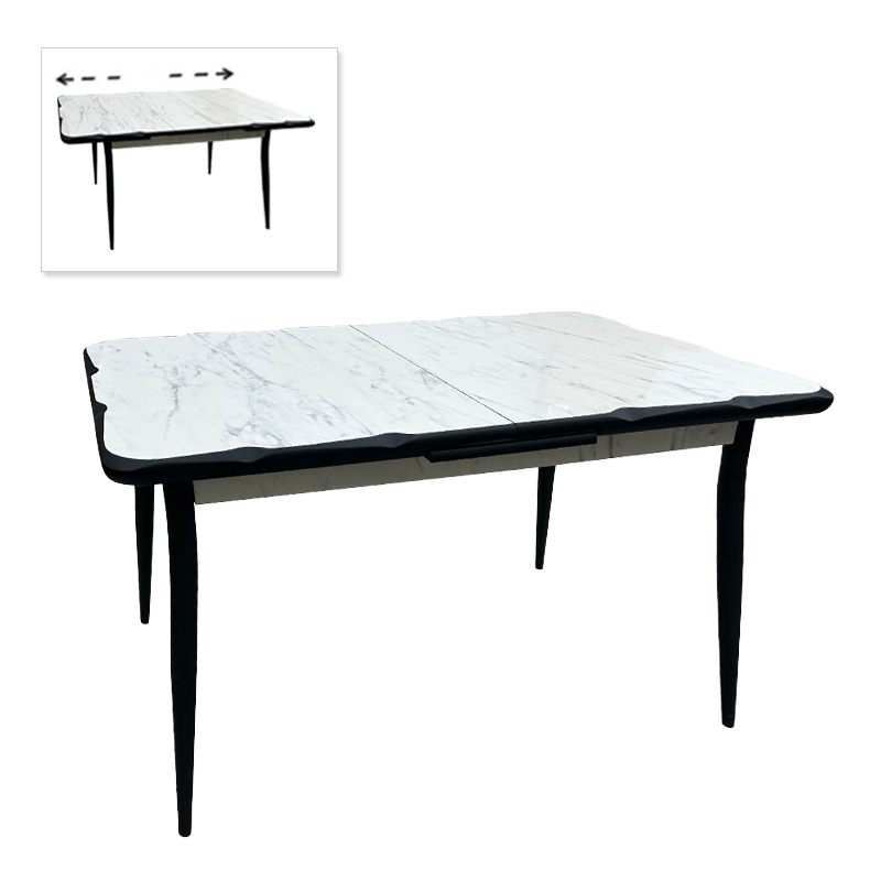 Τραπέζι Karen Megapap επεκτεινόμενο χρώμα λευκό εφέ μαρμάρου – μαύρο 130/160x80x75εκ.Τεχνικά χαρακτηριστικά: Χρώμα: λευκό εφέ μαρμάρου- μαύρο Διαστάσεις: Μήκος 130 x Βάθος 80 x Ύψος 75 εκ. Διαστάσεις ανοιχτό: Μήκος 160 x Βάθος 80 x Ύψος 75 εκ. Επεκτείνεται κατά 30 εκατοστά. Πάχος επιφάνειας: 40 mm. Κατασκευασμένο από Mdf εξαιρετικής ποιότητας και μέταλλο υψηλών αντοχών στη φθορά και στο χρόνο. Στήριξη σε μεταλλικά πόδια σε μαύρο χρώμα. Ιδανικό για τον οικιακό και επαγγελματικό σας χώρο.Παρατηρήσεις: Το προϊόν παραδίδεται αμοντάριστο στην εργοστασιακή του συσκευασία.Η χρωματική απόχρωση του προϊόντος ενδέχεται να διαφέρει ελαφρώς σε σχέση με τη φωτογραφική απεικόνισή του στην οθόνη σας.