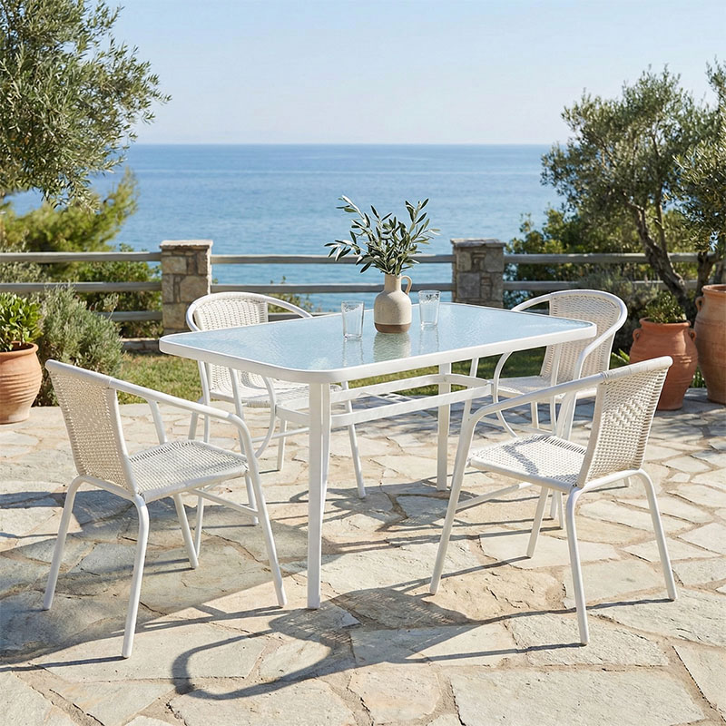Τραπεζαρία Obbi-Ensure pakoworld 5τεμ μέταλλο-γυαλί σε λευκή απόχρωση 120x70x70εκ 130-000167