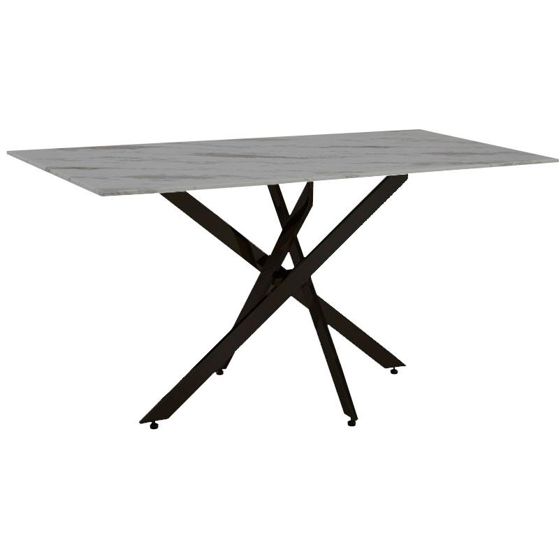 ΤΡΑΠΕΖΙ ΤΡΑΠΕΖΑΡΙΑΣ Fylliana Stone ΜΕ ΓΚΡΙ ΚΕΡΑΜΙΚΗ ΕΠΙΦΑΝΕΙΑ ΚΑΙ ΜΑΥΡΑ ΜΕΤΑΛΛΙΚΑ ΠΟΔΙΑ 160x90x76εκ