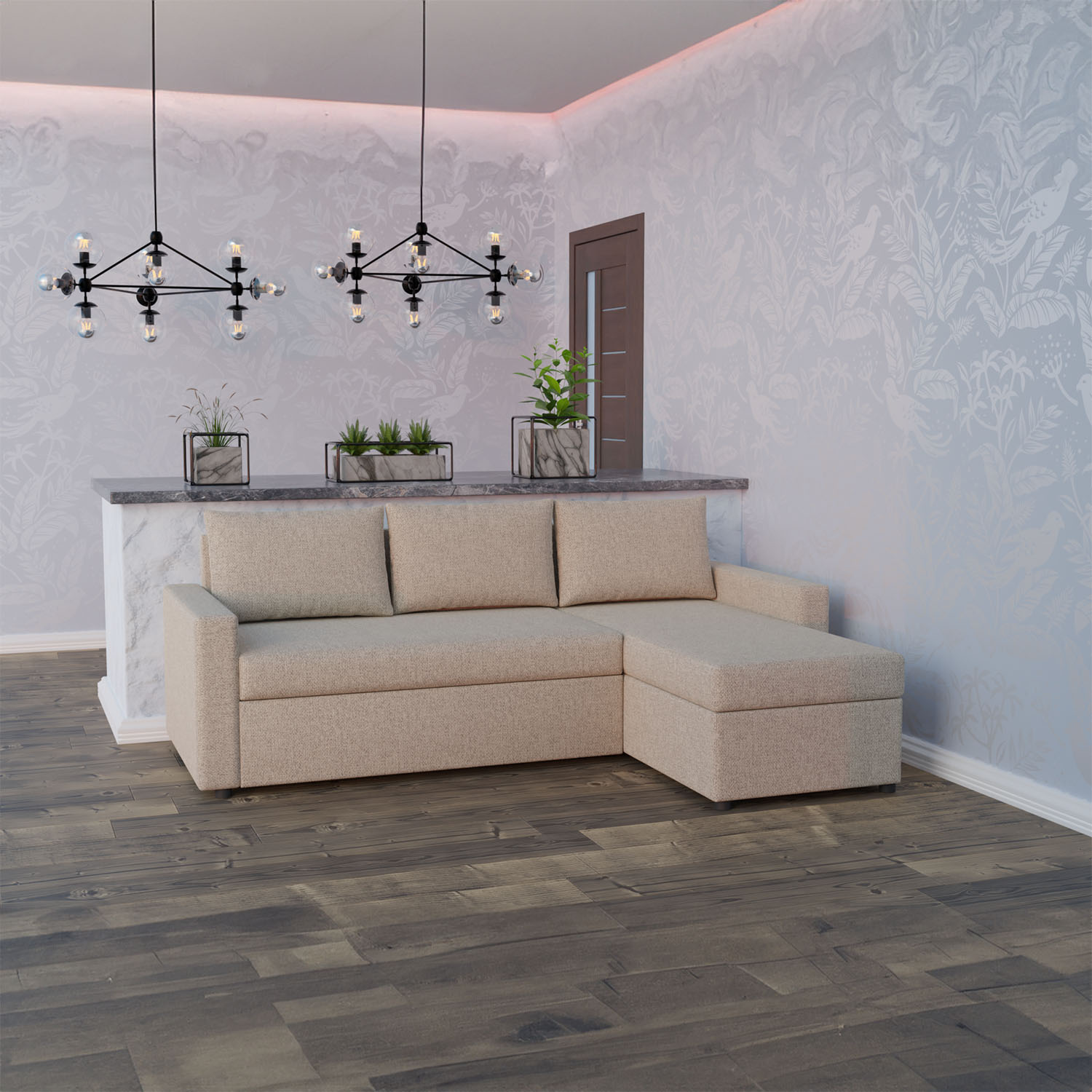 Concept Γωνιακός Καναπές Κρεβάτι με Αναστρέψιμη Γωνία & Αποθηκευτικό Χώρο Μπεζ 218x153x80cm
