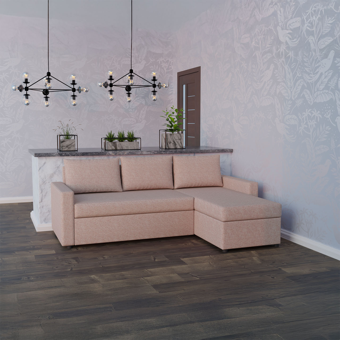 Γωνιακός Καναπές Concept, Ευρωπαϊκής Κατασκευής, εξαιρετικής ποιότητας και υψηλής αντοχής, σε απόχρωση σάπιου μήλου.
