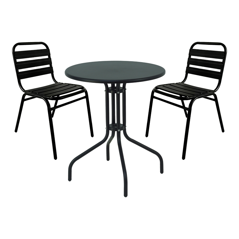 Tραπεζαρία Sussie-Vergo pakoworld σετ 3τεμ μαύρο μέταλλο-αλουμίνιο Φ60×70εκ